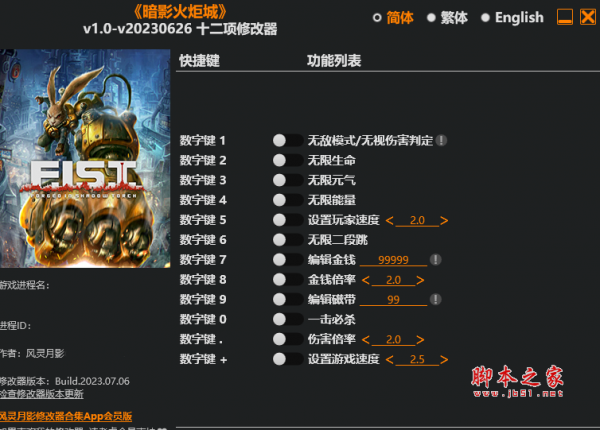 暗影火炬城十二项修改器由作者“风灵月影”制作,暗影火炬城是一款具有柴油朋克美学的银河恶魔城动作游戏,修改器具有无限生命,无限元气,无限能量,无限二段跳,无现金钱等十二项功能,喜欢的玩家千万不要错过哦。