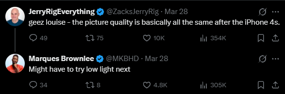 也有网友指出,传感器在白天的处理能力大概在8年前就已达到瓶颈,在强光下拍摄,其实只是让软件有机会掩盖硬件的不足,若想真正测试降噪和动态范围,应在低光场景下进行。
