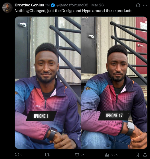 有网友表示:“什么都没变,只是这些产品的设计和炒作变了”“每年都买一部同款相机的新手机”“老款iPhone看起来更好看,处理得更少”等。