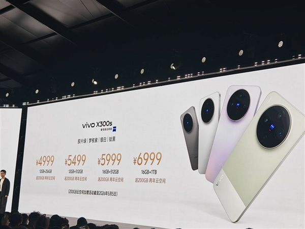 作为该系列的中坚力量,vivo X300s提供了多个存储版本以满足不同用户需求。其12GB+256GB版本起售价为4999元,12GB+512GB售价5499元,16GB+512GB售价5999元,最高配的16GB+1TB版本则定价6999元。