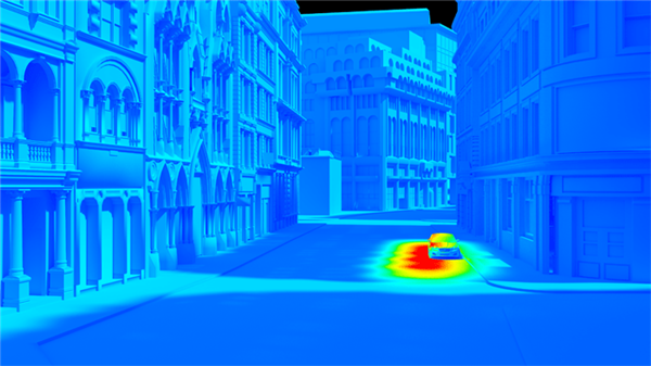 每天大约在午餐时间的两个小时内,一道极其强烈的反射光束会聚焦在南侧的街道上,主要是东奇普街(Eastcheap) 。这束光的强度远超正常水平,在街道上测到的 2 个局部温度包括高达 91 °C 和 117 °C。
