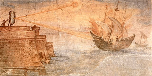 可能设计师的偶像是阿基米德,想模仿用来摧毁罗马船只的“死亡射线”吧。
