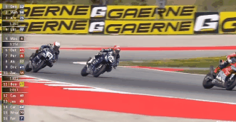 但很快,在倒数第二圈的时候,这台 53 号车,在直道来了波看不懂的加速,进弯后直接“生吃”了两台雅马哈 R9,重回第一,直到比赛结束。