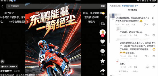 东鹏特饮迅速响应网友呼声,在2026年1月正式宣布成为张雪机车唯一中国赞助商,但传闻赞助金额仅为5万元。