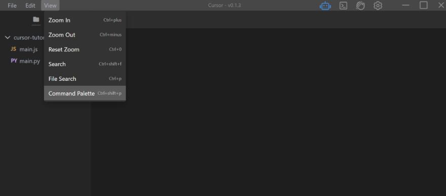 界面上就三个菜单栏:File、Edit、View,然后就是右上角的4图标了。这里着重关注一下View菜单下的Command Palette以及右上角的设置图标。