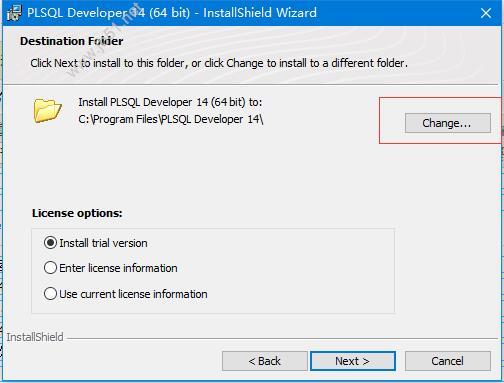 3、选择软件安装目录,默认C:\Program Files\PLSQL Developer 14\”