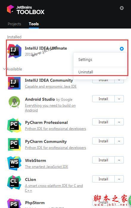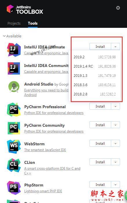 可以管理多个版本,并可以做到直接升级,但是依旧不支持增量更新,可以设置IDEA内存、查看安装路径等!