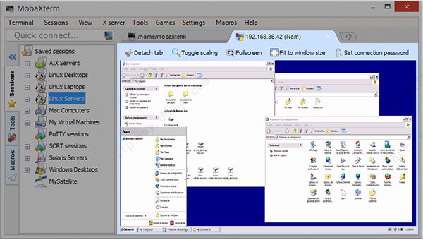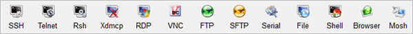 MobaXterm允许您启动远程会话。您可以选择创建SSH,Telnet,Rlogin,RDP,VNC,XDMCP,FTP,SFTP或串行会话。您开始的每个会话都会自动保存并显示在左边栏中。