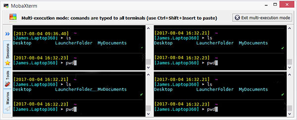 您可以在MobaXterm终端中记录宏:在终端中输入的所有内容将被记录,以便稍后在其他服务器上重播。