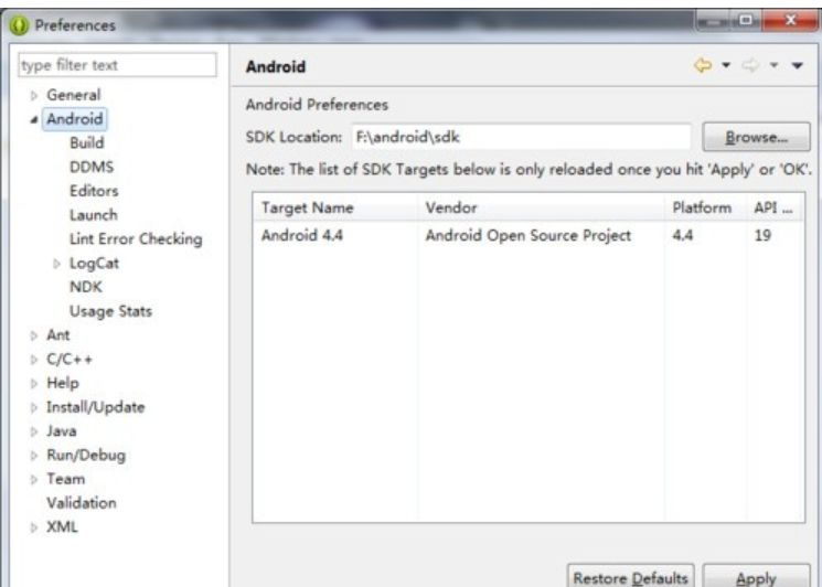 点击左侧菜单的android左边的小三角形,拉开菜单