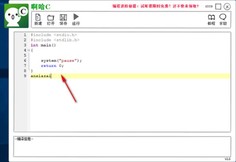 1、双击啊哈C快捷方式,打开软件,进入软件界面。