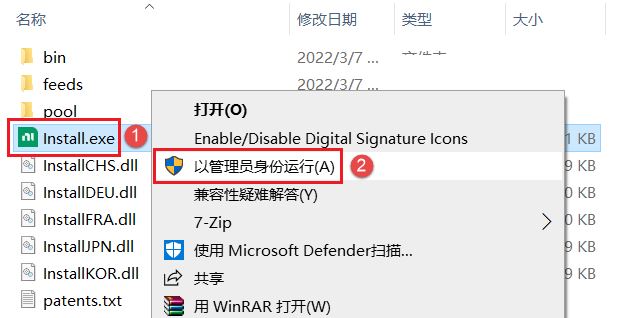 2.安装前先断网,在文件夹内找到Install.exe,鼠标右击选择【以管理员身份运行】