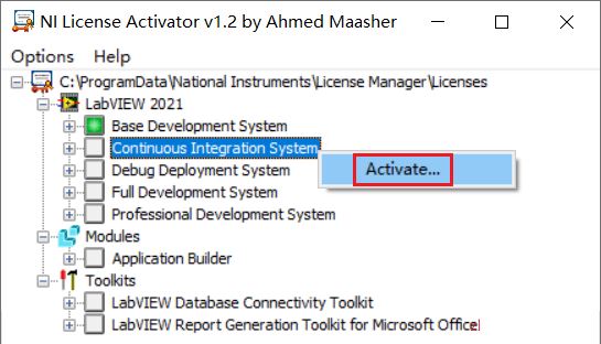 18.继续点击下一项Continues Integration System,鼠标右击弹出【Activate】按钮,依次将所有项目前面的小框由灰变绿,然后点击右上角【×】关闭