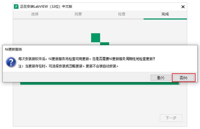 12.弹出提示周期性检查更新服务,点击【否】