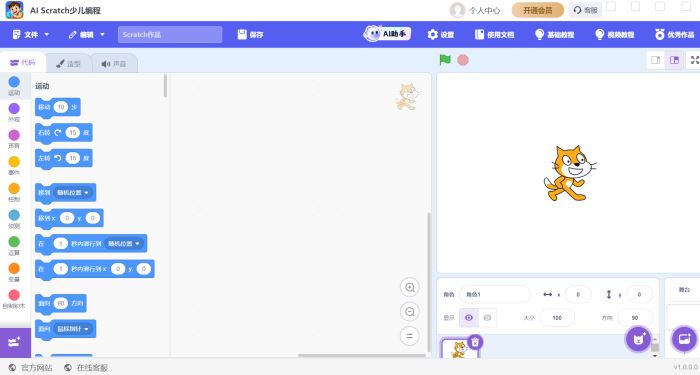 AI Scratch少儿编程电脑端使用的编程启蒙学习软件,适合6-12岁儿童编程启蒙使用,软件采用像搭积木一样的可视化操作,让孩子在指尖拖拽中理解编程逻辑等,欢迎下载使用。