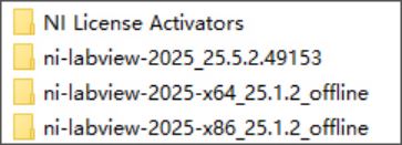 1、下载解压,得到32位和64位NI LabVIEW 2025 Q3 Patch 2中文版,以及NI License Activators激活补丁;