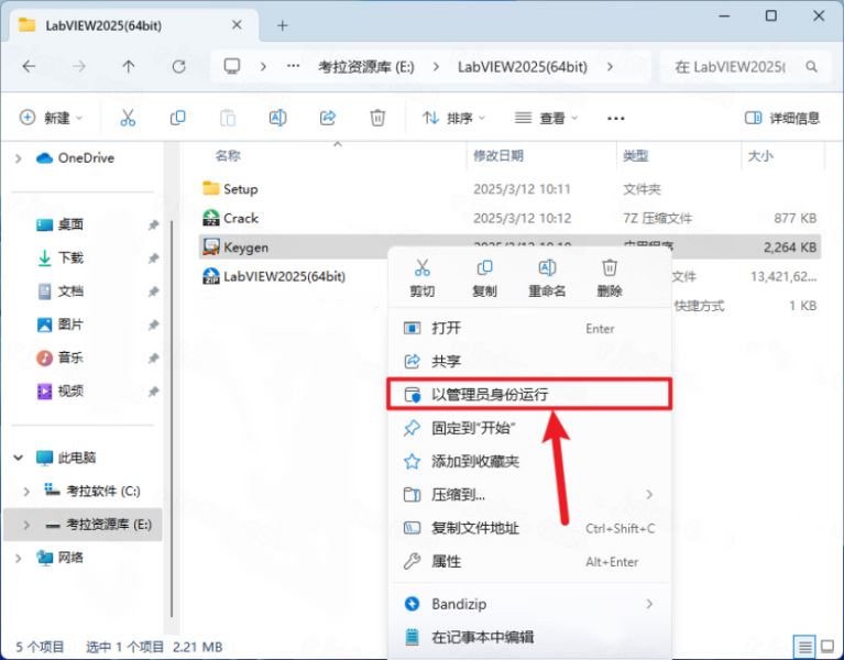 13、打开解压后的labview2025文件夹,将NI License Activators激活补丁crack解压出来;