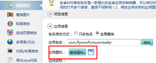 想要替换应用图标,我们只要将APK包导入到安卓修改大师中。
