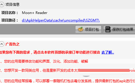 3、提供多渠道打包功能:通过已经打包的APK安装包作为模板,反编译后,动态修改配置文件或者SMALI代码中的渠道标志来实现批量重新多渠道打包,由于不是源代码级别的打包,所以大大提升了批量打包的速度和效率。