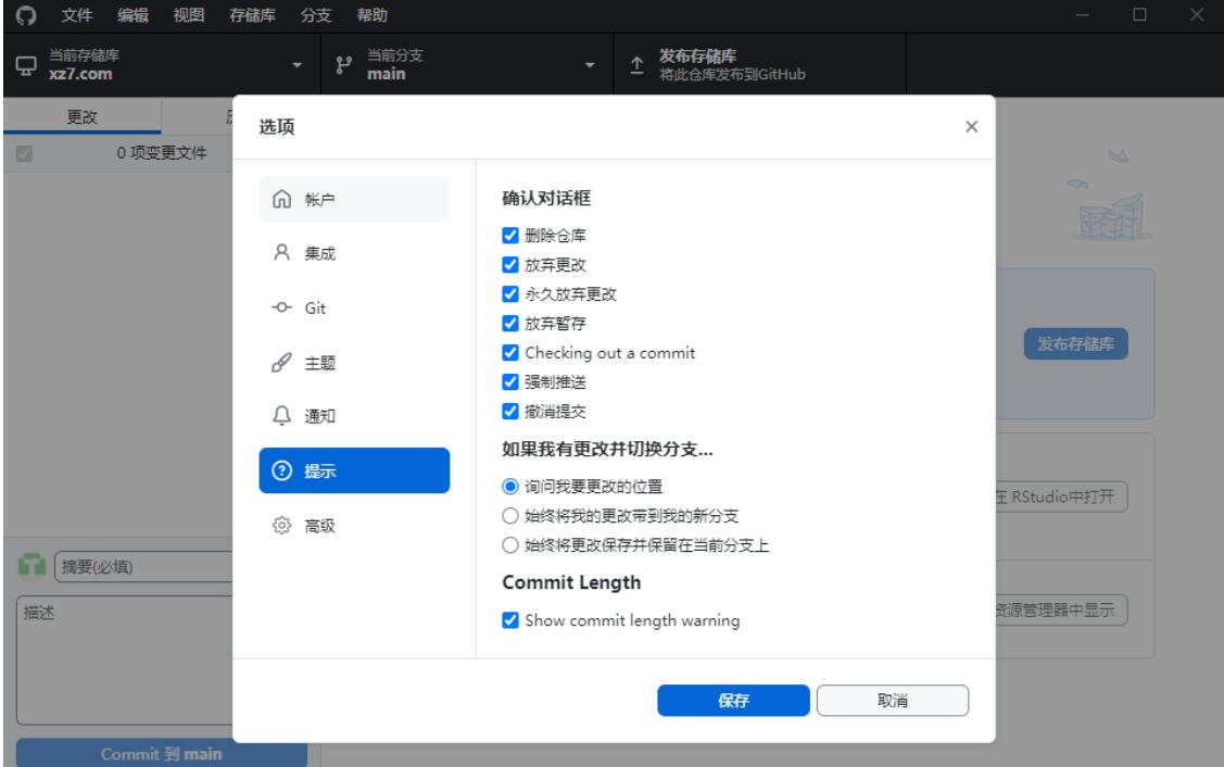 6、确认对话框:删除仓库、放弃更改、永久放弃更改、放弃暂存、Checking out a commit、强制推送、撤消提交