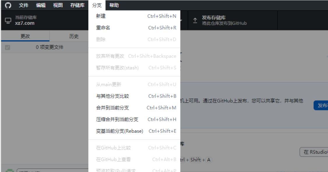 7、分支设置功能:从main更新、与其他分支比较、合并到当前分支、压缩合并到当前分支、变基当前分支(Rebase)
