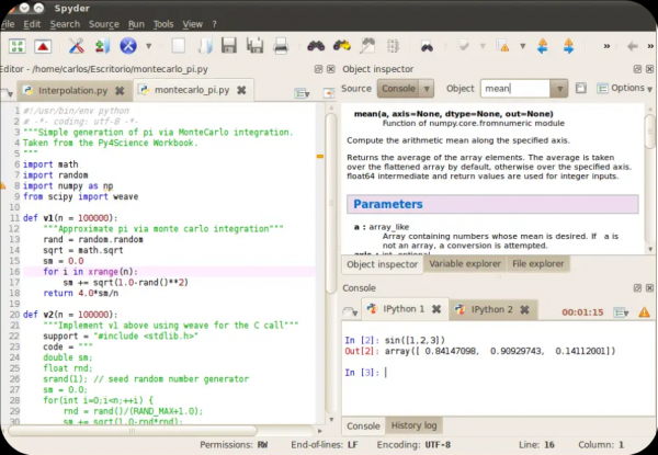 2、交互式控制台:Python或IPython控制台具有工作空间和调试支持,可以立即评估编辑器中编写的代码。它还带有Matplotlib数字集成。