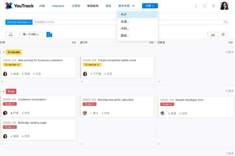 面板为在各个级别规划和跟踪项目提供了一种很好的方式 – 从个人积压工作到企业事务组合。YouTrack 支持看板、Scrum 以及您的团队可能拥有的任何流程的混合方式。