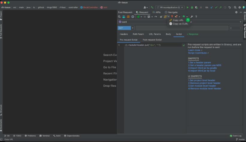 Restful Fast Request 是一个类似于 Postman 的 IDEA 插件。它是一个强大的 restful api 工具包插件,可以根据已有的方法帮助您快速生成 url 和 params。 Restful Fast Request = API 调试工具 + API 管理工具 + API 搜索工具。 它有一个漂亮的界面来完成请求、检查服务器响应、存储你的 api 请求和导出 api 请求。插件帮助你在 IDEA 界面内更快更高效得调试你的 API。