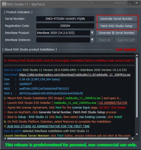 4、回到数据包中运行补丁“RADStudioKeyPatch.exe”点击Generate Serial Number,然后点击Patch RAD Studio Setup-yes