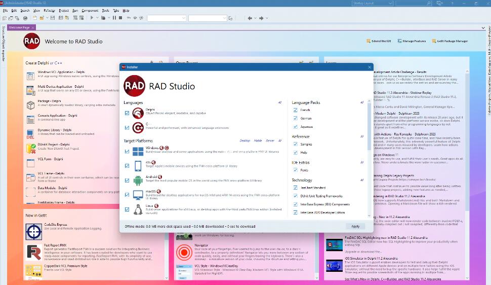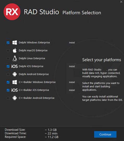 与 RAD Studio 核心安装集成,无需额外选项安装。