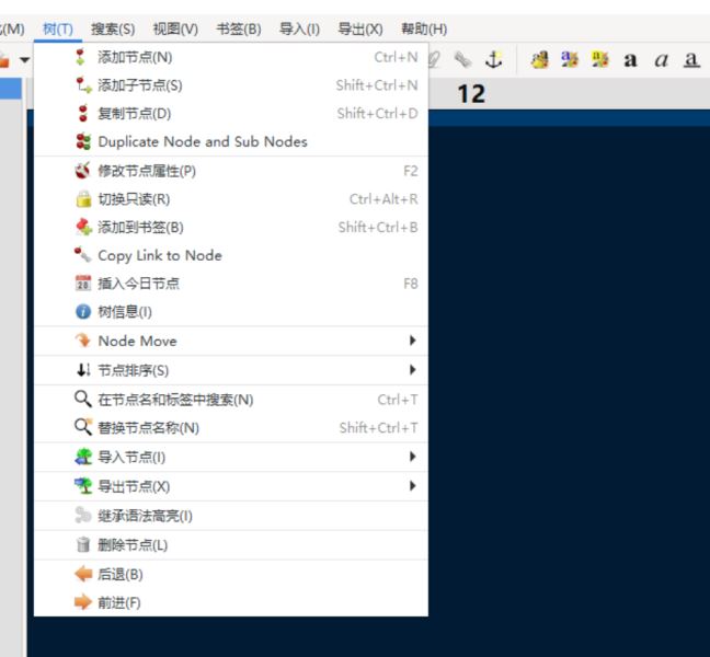 10、点击树按钮弹出添加节点、子节点、复制节点等功能列表,点击选择功能即可进行节点操作