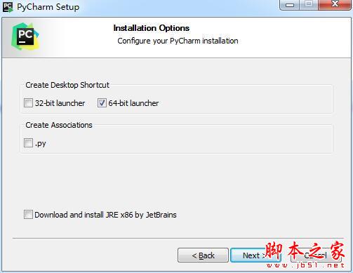 勾选创建pycharm 2018桌面快捷方式,小编选择64位,下面的是否关联文件格式自行选择