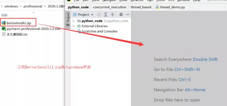 将 “BetterIntelliJ” 文件拖入PyCharm窗口中。