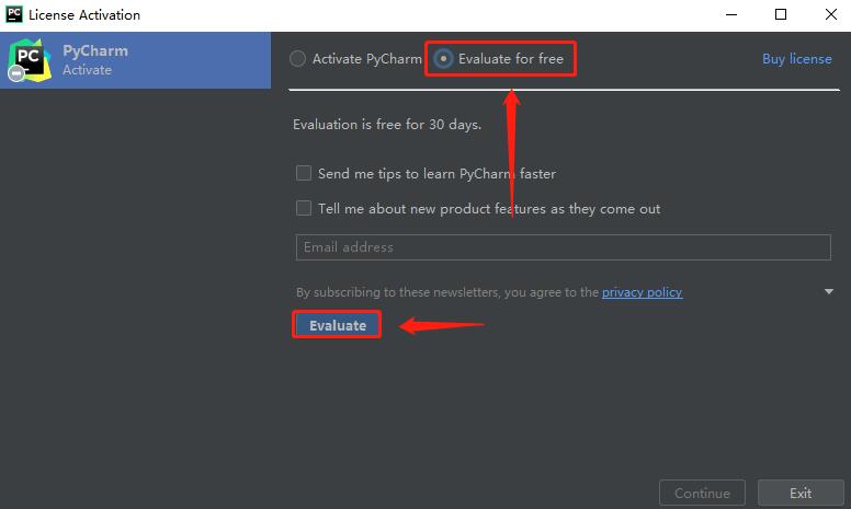 安装完成后直接点击 “Evaluate for free” 先免费试用,然后点击 “Evaluate”