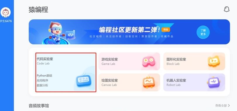 1、在首页点击进入【代码实验室】