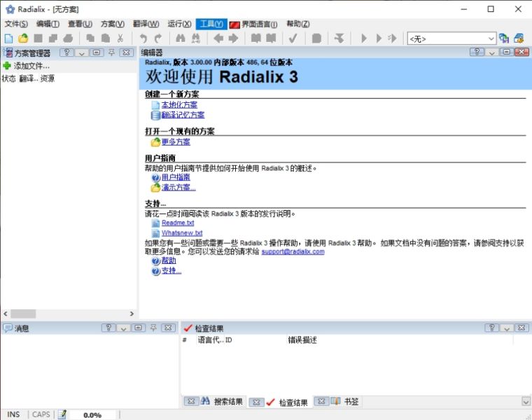 Radialix 3中文版可以说是一款非常专业、且功能强大的软件本地汉化工具应用。软件不仅界面简洁友好,操作使用便捷,以及具备了超强的汉化技术,能够轻松支持用户对于 VC++、Delphi、Net等语言编写的软件、以及INI格式文本文件的汉化操作。并且其所提供的自动翻译的功能,包括模糊翻译、机器翻译、翻译验证还可使翻译出来的结果更加精准,相比较于市面上的大多数同类型产品来说,无论是翻译技术,文件、格式等支持面Radialix 3都更胜一筹,旨在带给广大用户最佳的汉化使用体验。除此之外,Radialix 3汉化工具还拥有着一项超强的翻译记忆库技术,其中记录的片段以不同的语言自动匹配,并可将被翻译的文本与在翻译记忆库中的条目进行比较,在找到一个匹配时用找到的内容来替换在目标语言中原来的片段。从而在下次再遇到相同的词时,可以快速的翻译出来。总而言之,软件专业实用,感兴趣的朋友可以来下载试试看哦!