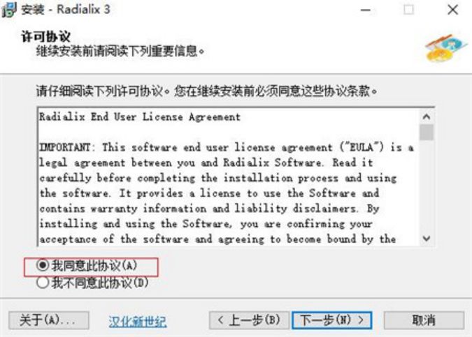 2、双击“Radialix_3.00.00.486.exe”文件运行,勾选同意协议。