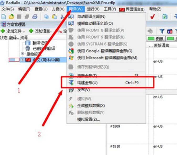 六、翻译引擎翻译完成了,大家要养成另存工程文件,之后点击构建全部项目,如下图: