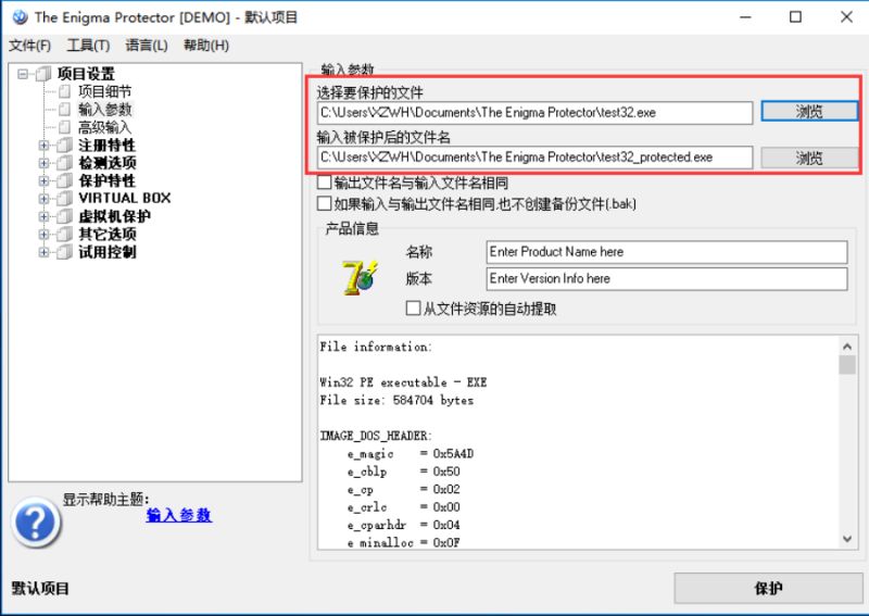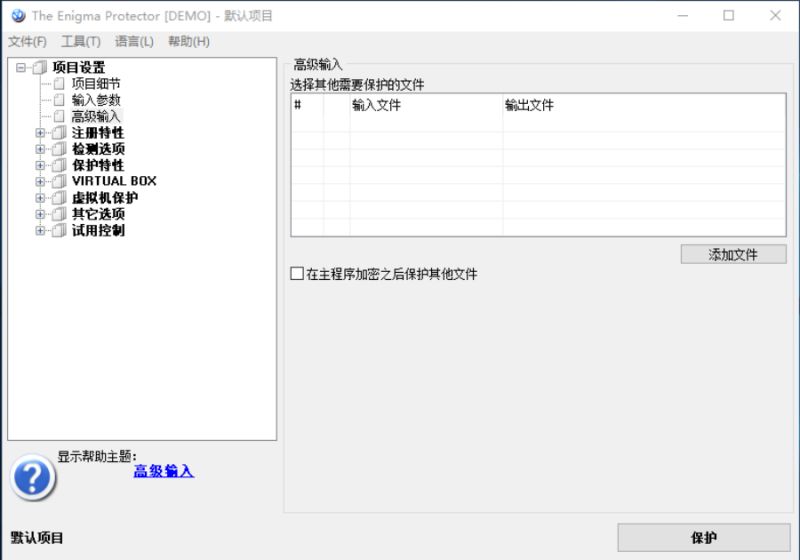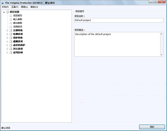 Enigma protector 是优秀的软件保护系统,支持 Win32 可执行文件 (*.EXE) 、动态链接库 (*.DLL) 、Active 控件 (*.OCX)和屏幕保护程序 (*.SCR)。它应用艺术性的加密、数据压缩和其它安全特性来保护您的程序免遭破解。Enigma protector 可以通过内部 API 函数改变模式参数来创建试用版和注册版程序。它允许您为自己的软件添加保护和注册系统,并且支持多语言。