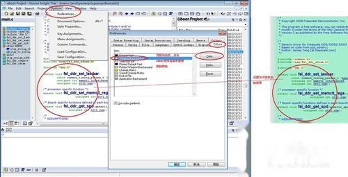 2、我们天天坐在显示器前工作的人,眼睛总是很需要保护,有人说多看绿色的对视力好,呵呵,不知真假,但是Source Insight确实可以更改背景色配置,如果你需要就根据自己爱好配置一下吧。Source Insight默认配置为颜色如上图所示。下面我们示例一下主代码区的背景色更改。