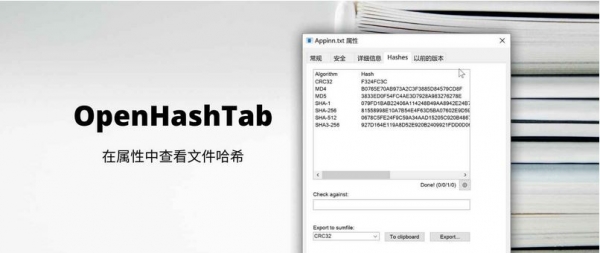 OpenHashTab是一款小巧的 Windows 辅助工具,它能够在文件属性、文件夹属性中添加一个 Hashes 标签,用来显示每一个文件的哈希值,并且可以输入哈希值进行对比