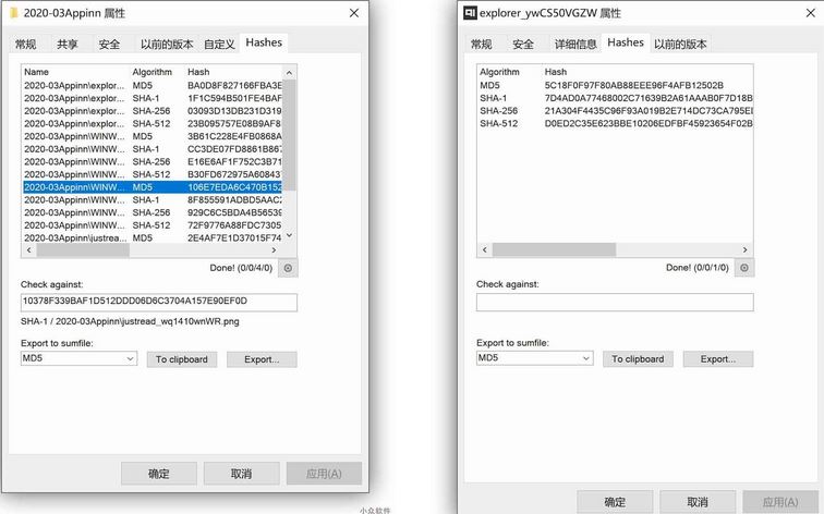 其中文件夹属性可以看到文件夹内每一个文件的哈希值。支持的算法非常多: