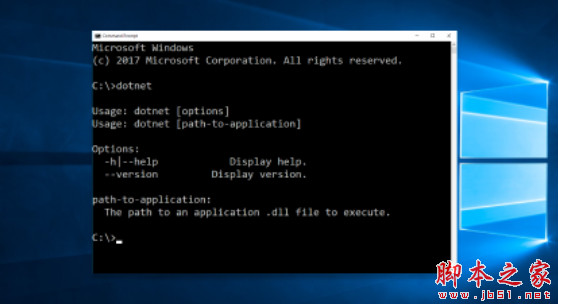 安装程序完成后,打开一个新的命令提示符并运行该dotnet命令。这将验证.NET是否已正确安装并可以使用。