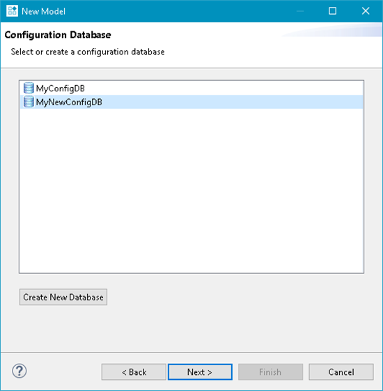 单击创建新数据库以创建新的配置数据库。 如果您创建一个新数据库,请在提示符处输入一个名称,然后单击“确定”进行保存。