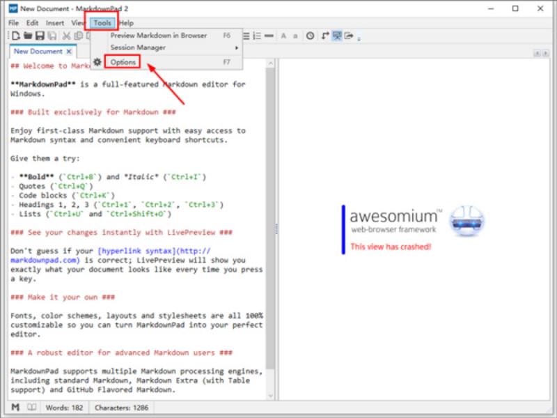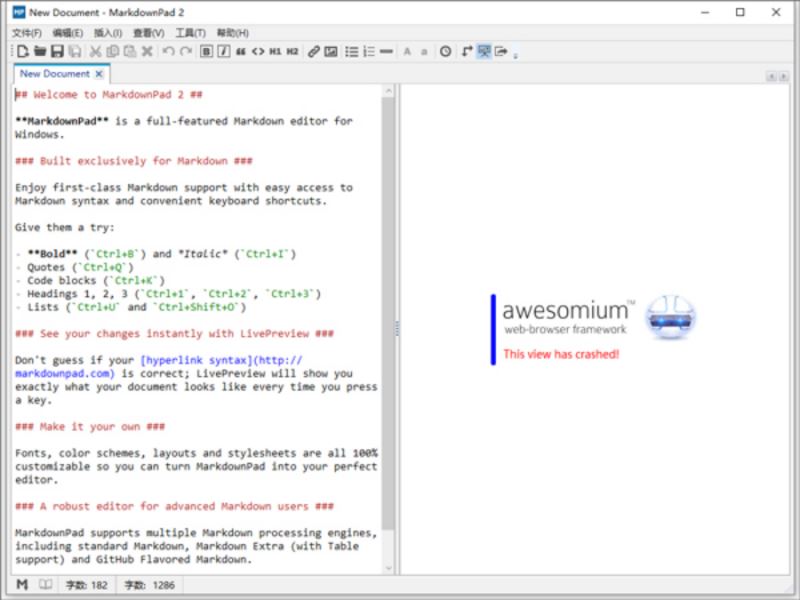 3、启动Markdown Pad2,报错’Awesomium.Windows.Controls.WebControl’?