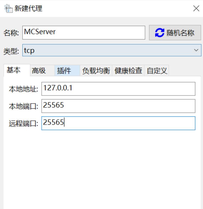 在这里给大家举个例子,假如我要将本地局域网内的MC进行转发(局域网开放端口通常默认为25565),方便朋友进行联机,那么我的配置就可以如下图所示: