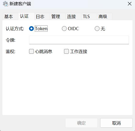 因为博主frp服务端配置的是Token连接,所以点击认证,选择Token,并填写口令。