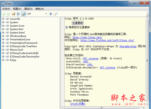 预置了调试插件,支持在ilspy中无源代码直接调试程序集,ilspy反编译工具是一款强大的.net平台反编译软件,使用ilspy反编译工具,可以轻松的反编译C#及VB程序,软件本身是C#程序,是一款开源软件