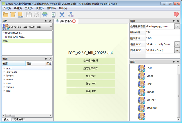 二、打开APK后,用户可以对APK内部构造进行了解。