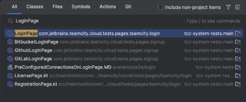 用户可以使用智能搜索跳至任何类、文件、符号、IDE 操作或工具窗口。按两次 Shift,然后输入要查找的内容的名称即可。
